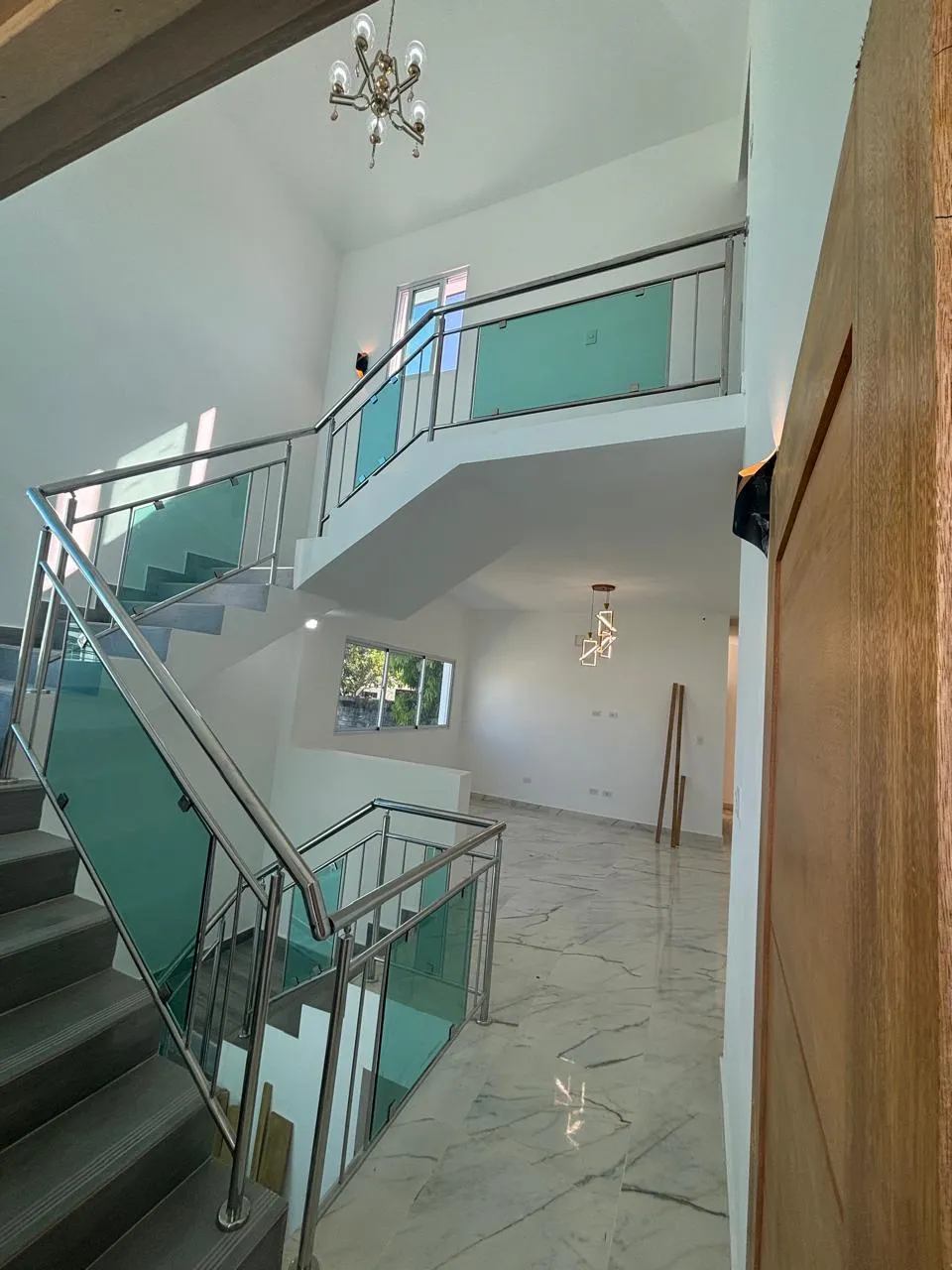 Escaleras en cristal hasta el techo .